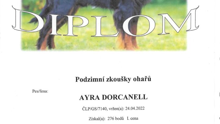 Náš odchovánek Bridget Dorcanell na zkouškách obdobných našim ZV v Lotyšsku – I. cena a 2. místo