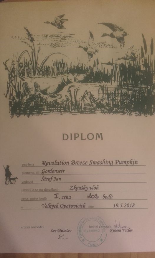 V té době jsme ještě nevěděli co to znamená, ale vzápětí jsme to pochopili. Automaticky se z těch disciplín, které souvisí s nalezením divoké zvěře, snižuje známka ze 4 na 3. I když Dorka pracovala moc hezky, a zkoušky i přes to složila v krásné I. ceně s 203 b., na chovnost nám to bylo prd platné. Aby mohla být zařazena do chovu, musela splnit na zkouškách limitní známky. A tyto bohužel nesplnila, skrze nenalezení divoké zvěře.